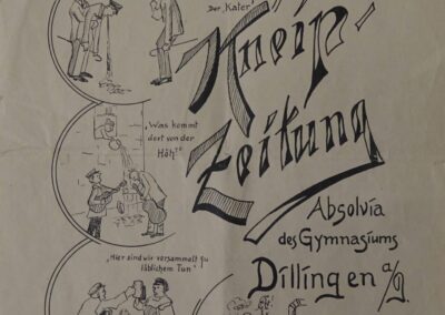 [27] Vgl. Bericht „Wiedersehen der Absolvia 1925“, Donauzeitung vom 22.07.1965. Übernahme des DZ-Berichts unter dem Titel „Absolvia 1925“ in: Dilingana. Mitteilungen der Studienvereinigung. Nummer 27 (Winter 1965). S. 12-13.