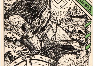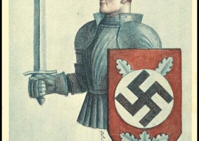 Textlich beschwören die Karten Wettkampf, Durchhaltevermögen und Sieg, also Eigenschaften, die zum erfolgreichen Erwerb der Hochschulreife durchaus nützlich sind. Durch die Kombination mit Bildmotiven von gepanzerten Rittern, siegfriedartigen Schwertträgern und anderen martialischen Typen können diese Bildwerke aber auch auf die Politik der Nationalsozialisten zur Überwindung des Versailler Vertrags und zur Wiederherstellung politisch-militärischer Stärke Deutschlands bezogen werden. Die Karten von 1940 und 1942 zeigen, propagandistisch überhöht, Szenen des Militärdienstes.