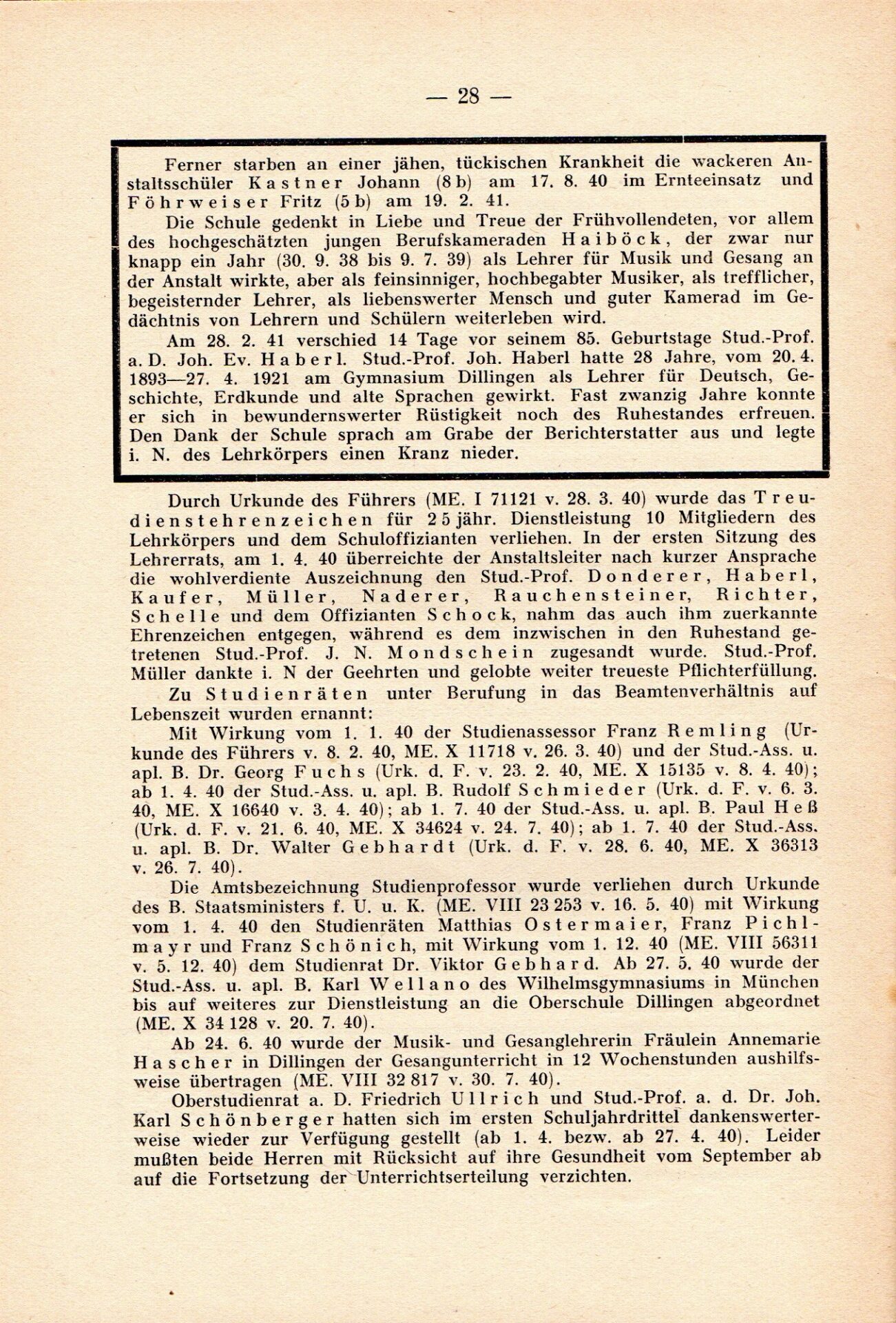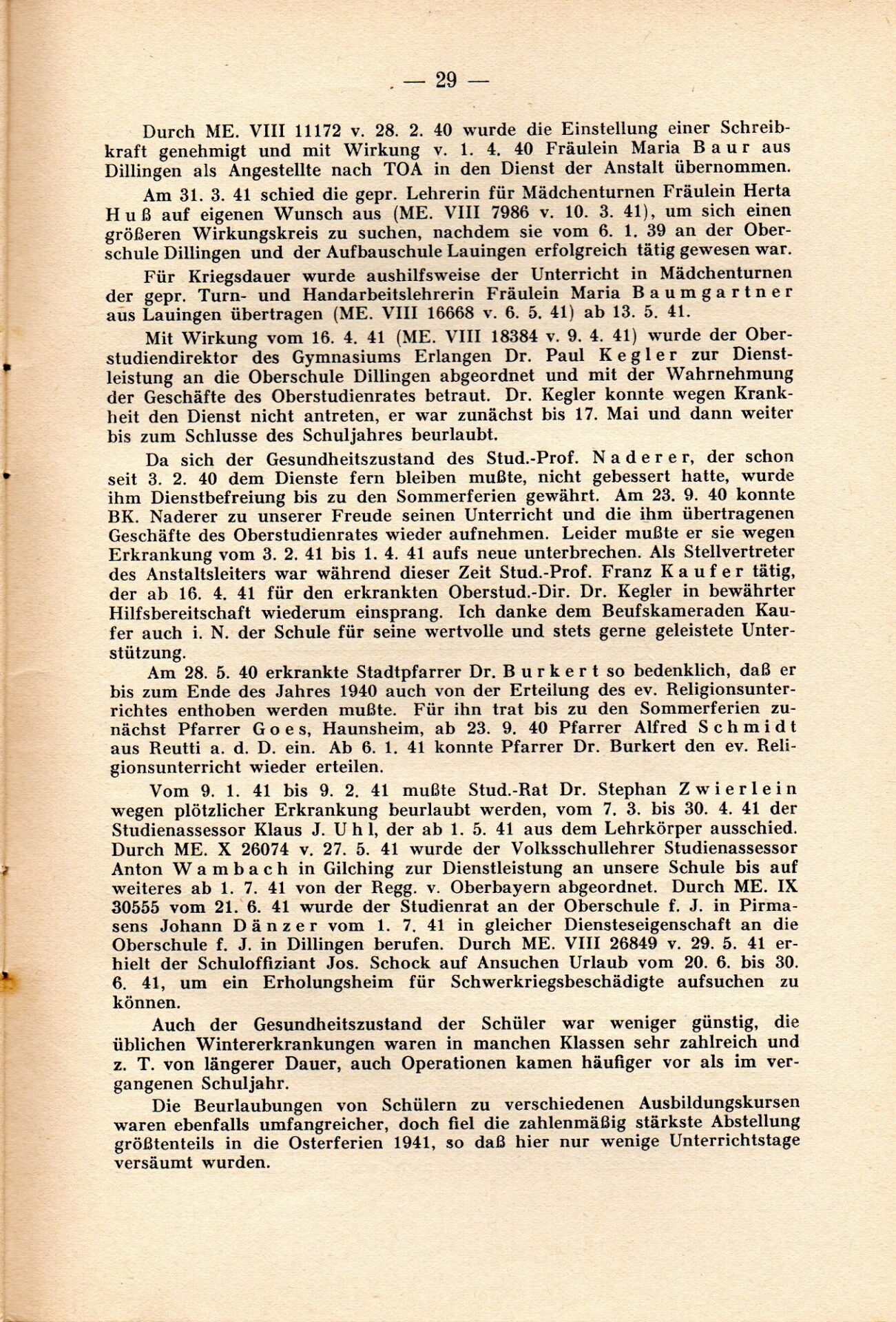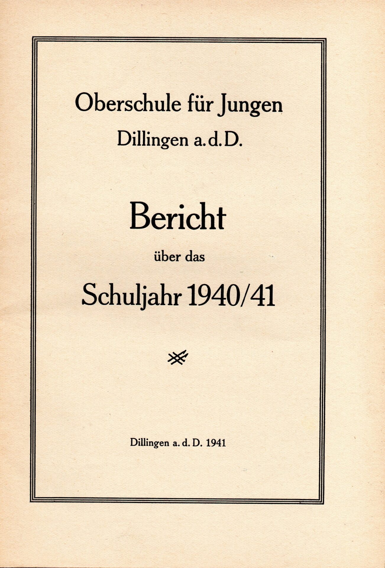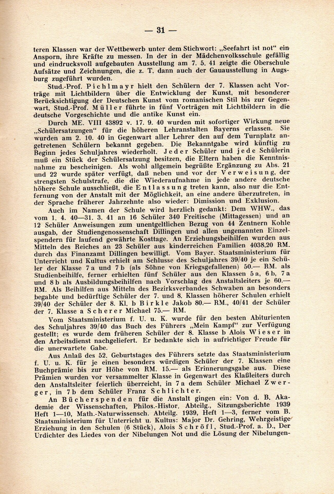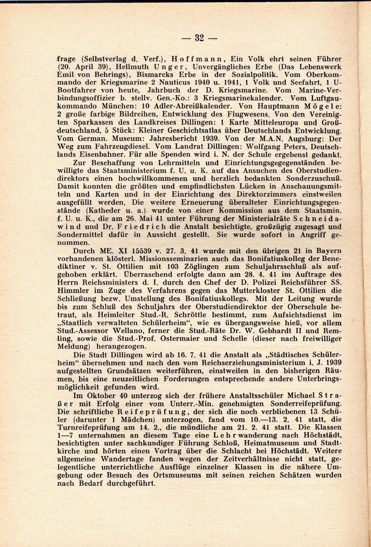 [33] Oberschule für Jungen Dillingen a.d.D. Bericht über das Schuljahr 1940/41. S. 33.