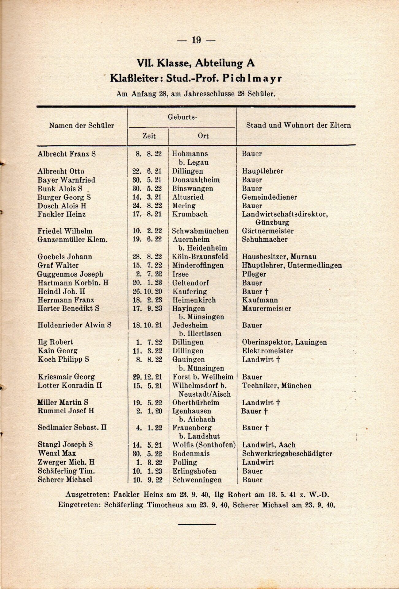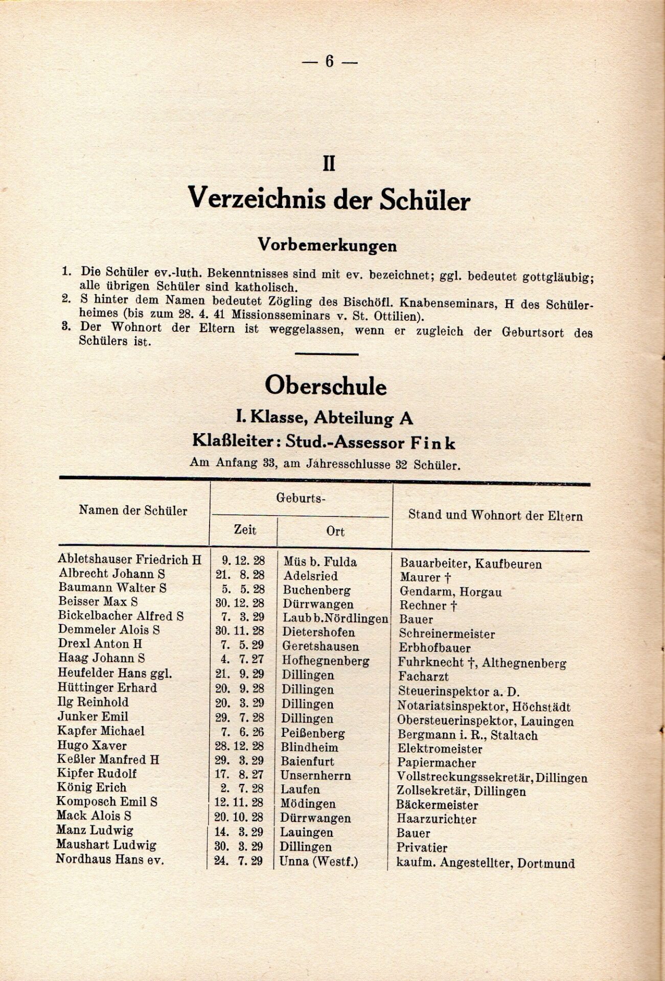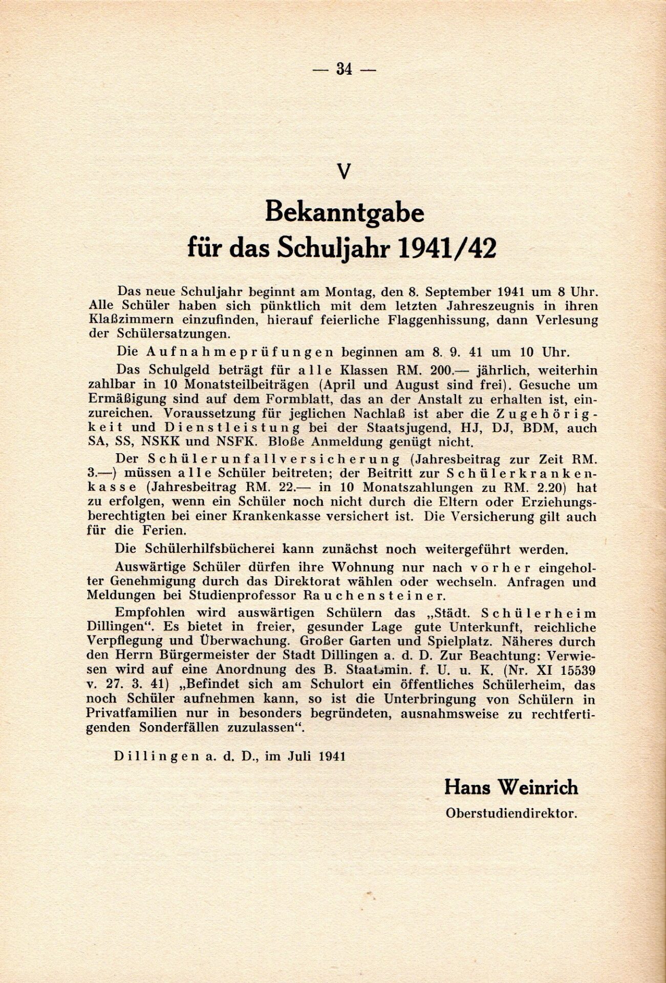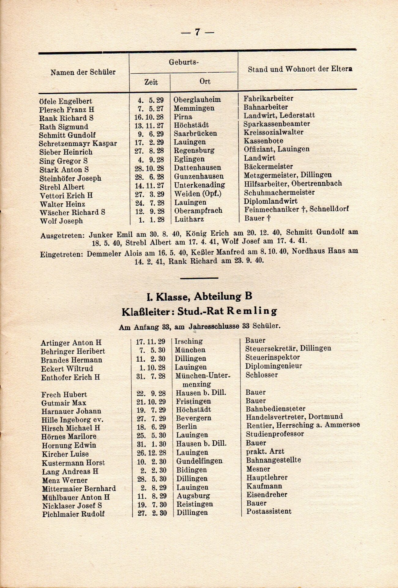[33] Oberschule für Jungen Dillingen a.d.D. Bericht über das Schuljahr 1940/41. S. 33.