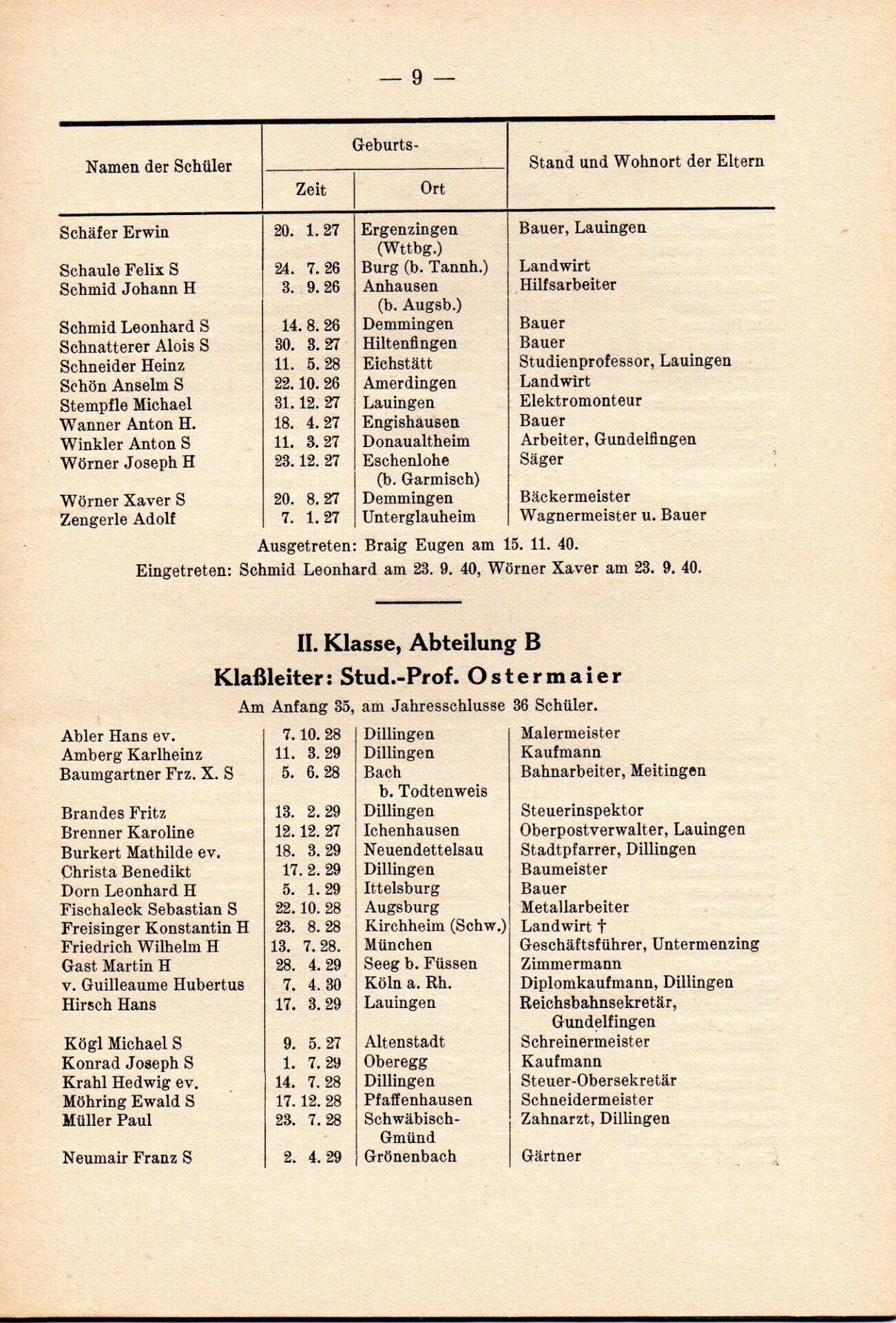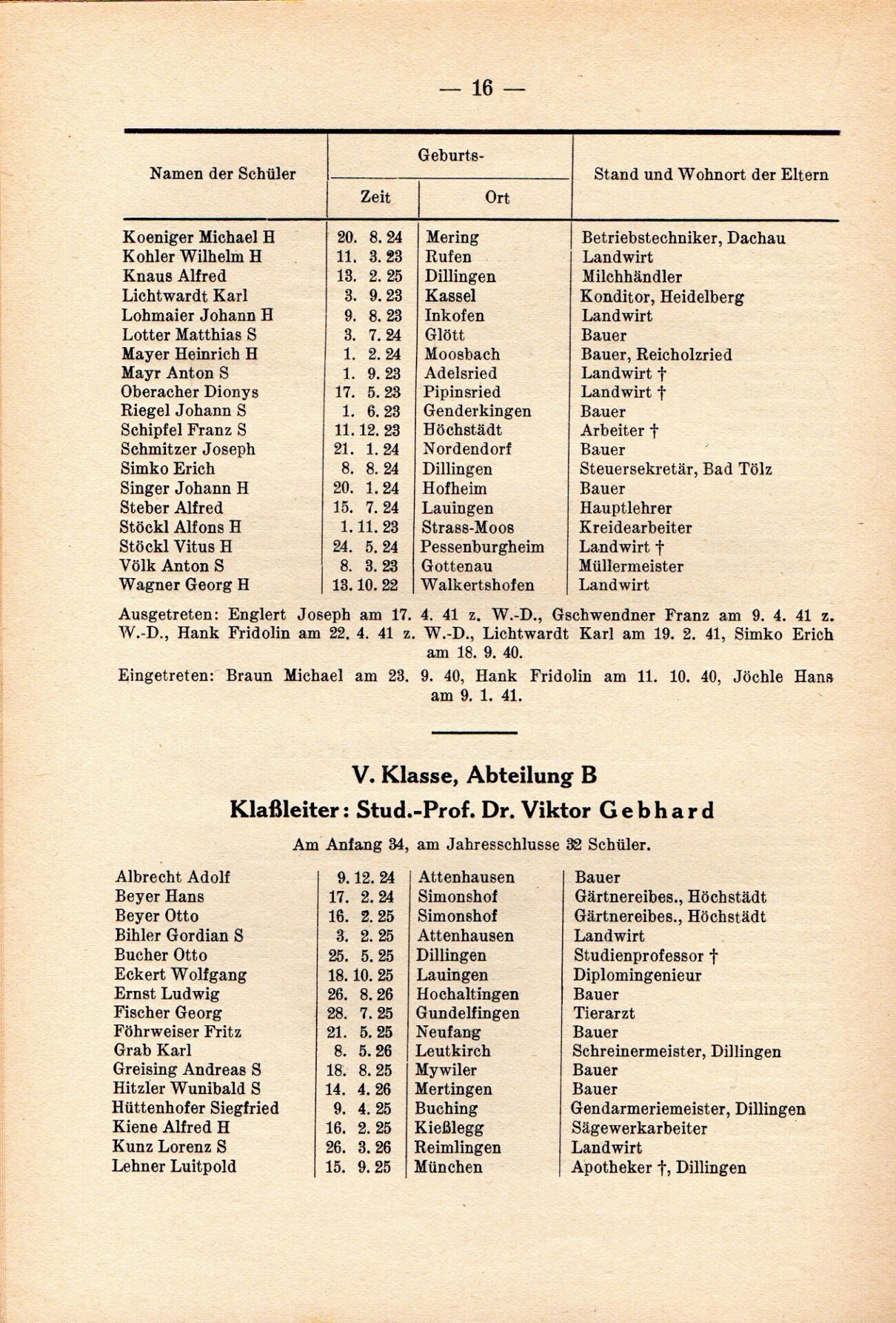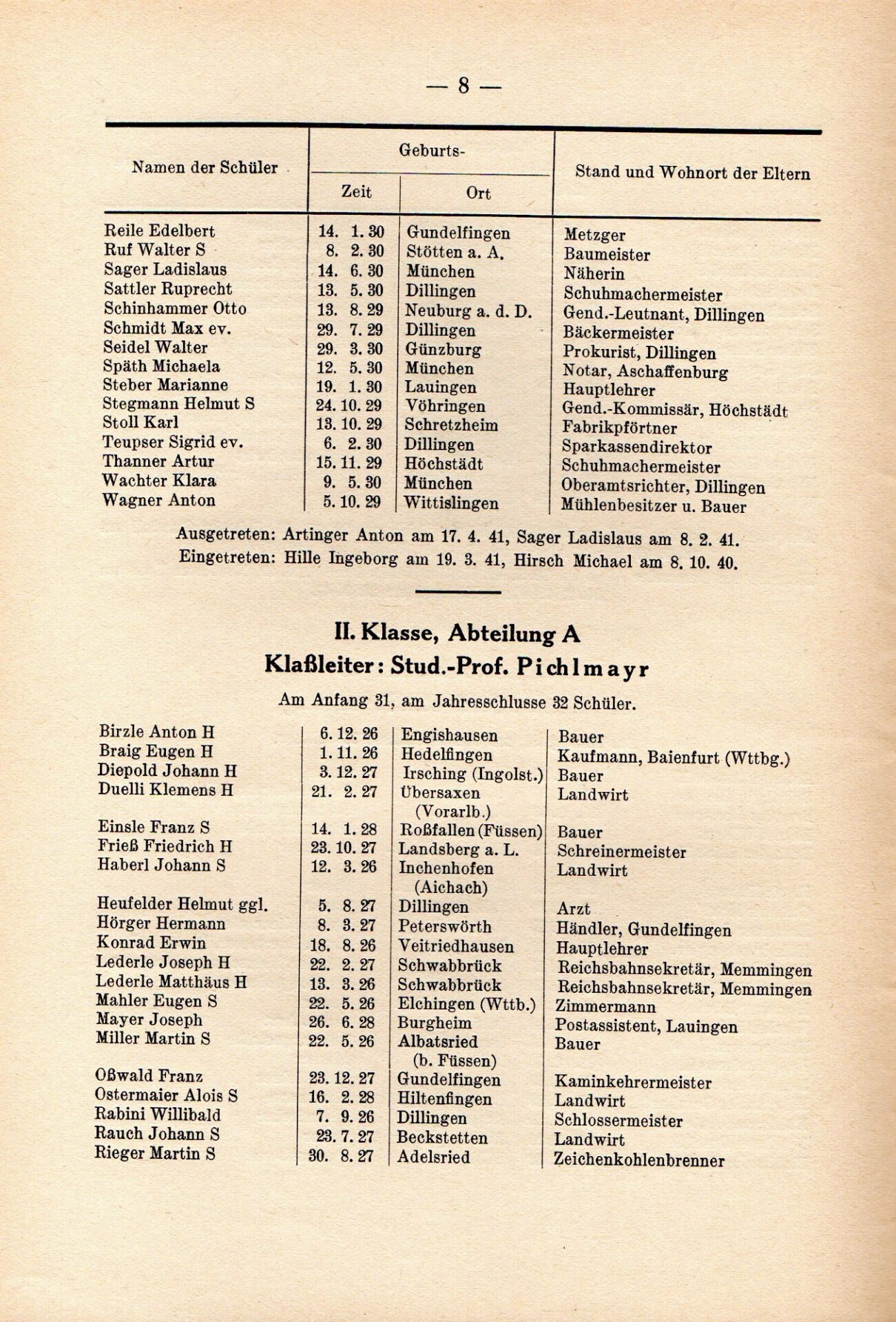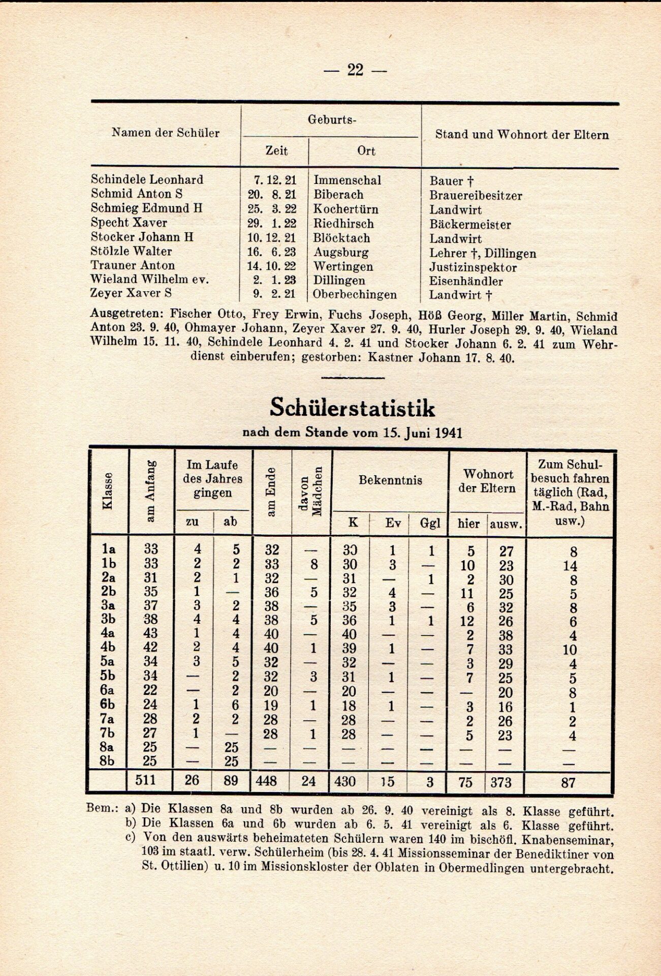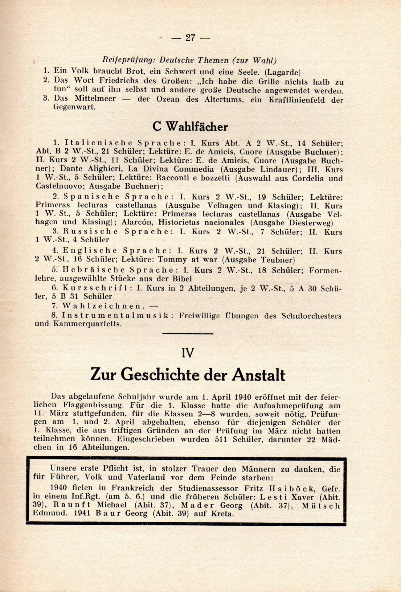 [33] Oberschule für Jungen Dillingen a.d.D. Bericht über das Schuljahr 1940/41. S. 33.