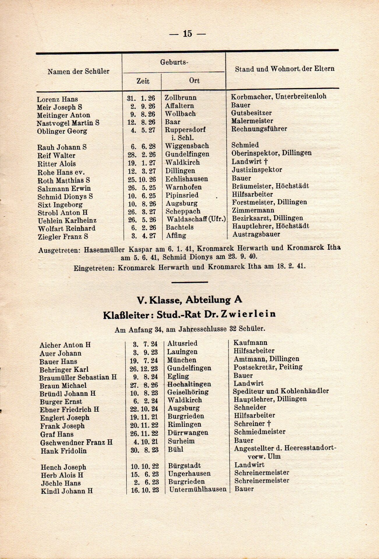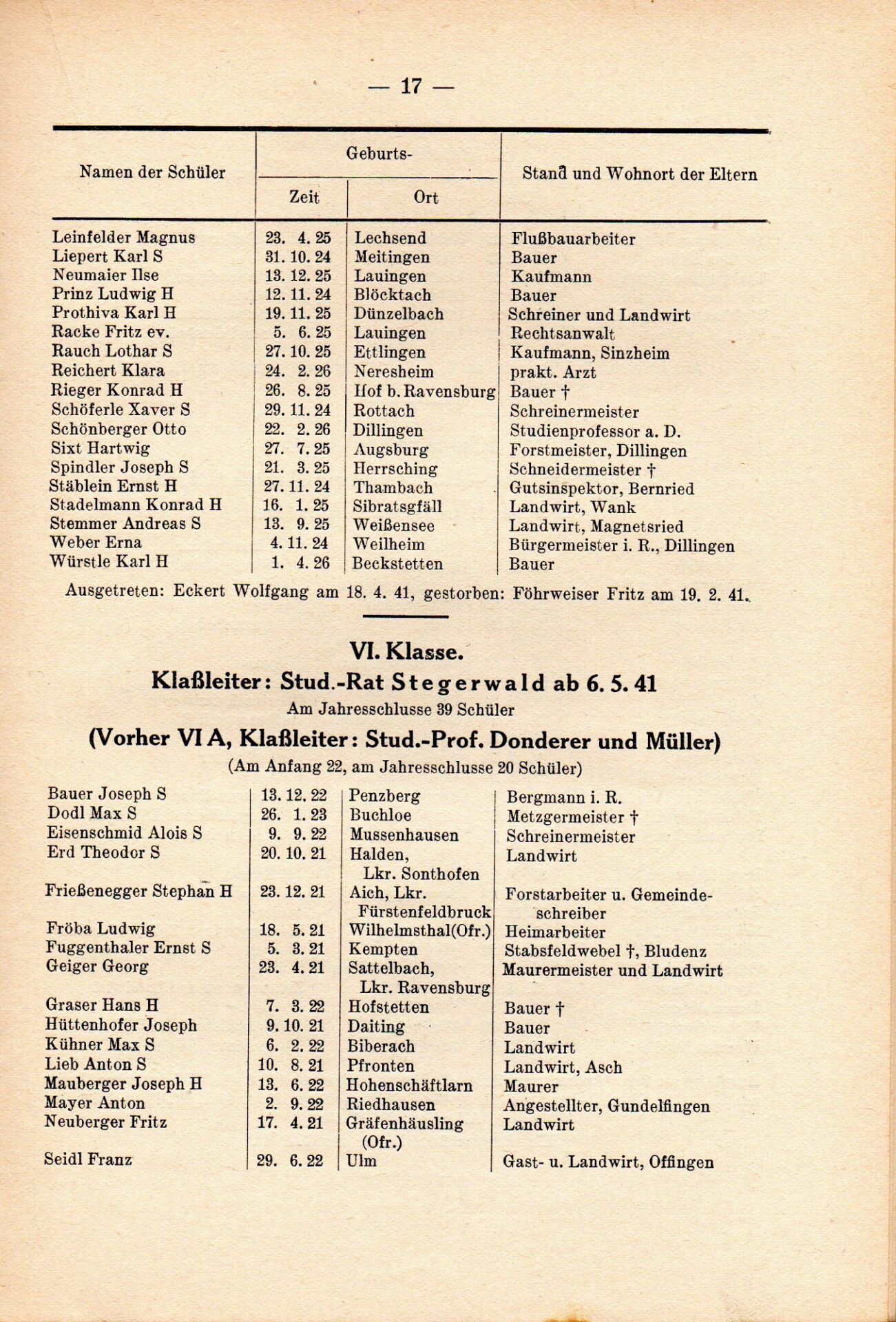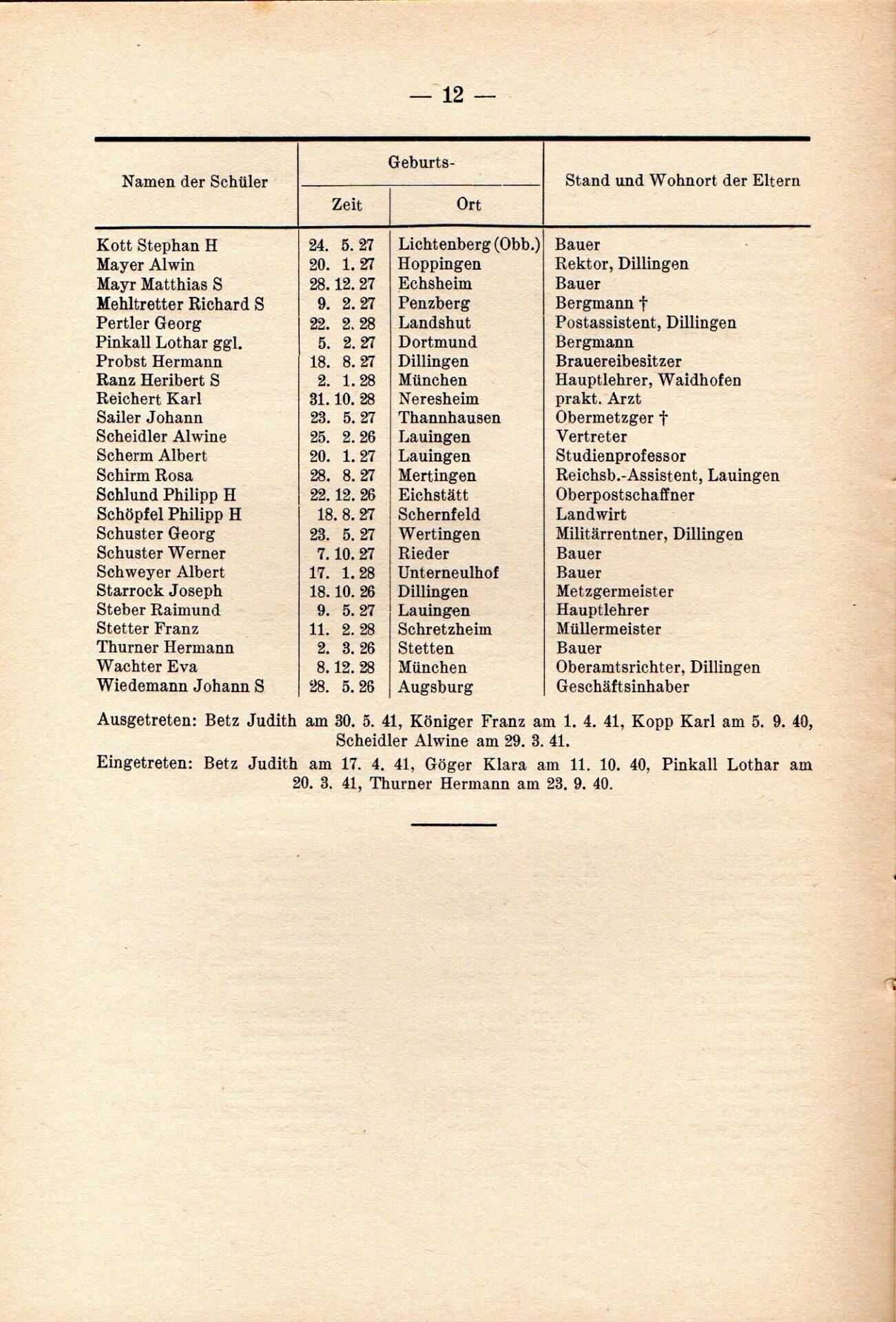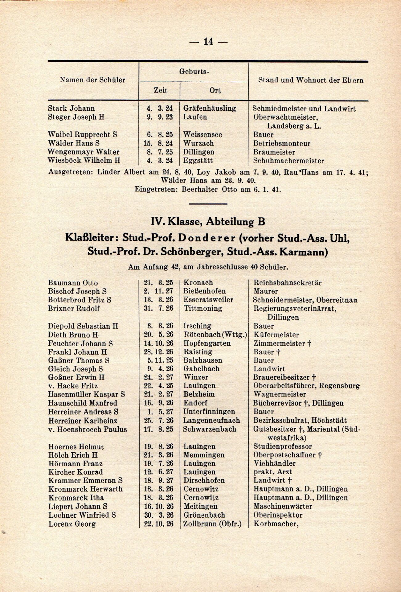 [33] Oberschule für Jungen Dillingen a.d.D. Bericht über das Schuljahr 1940/41. S. 33.