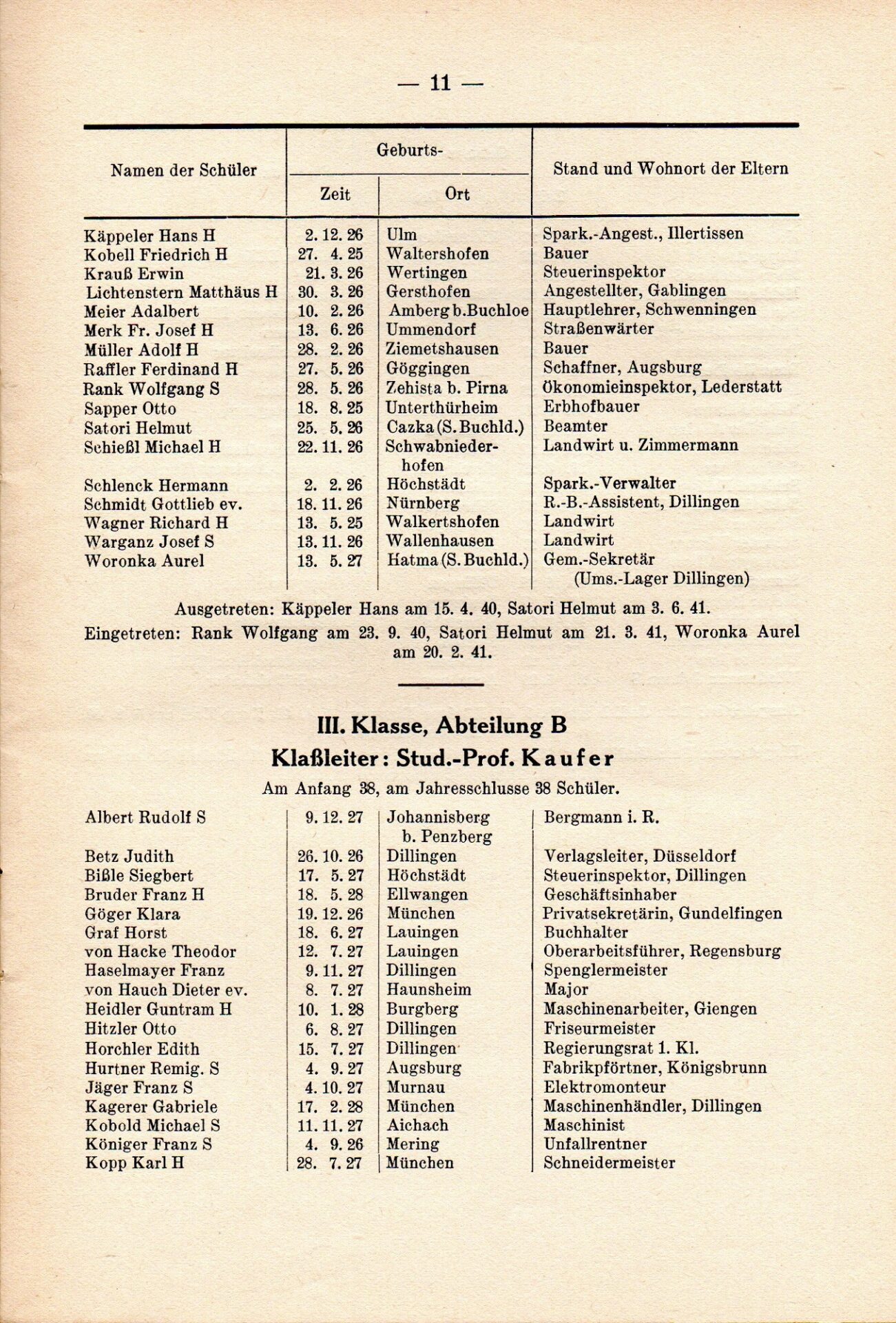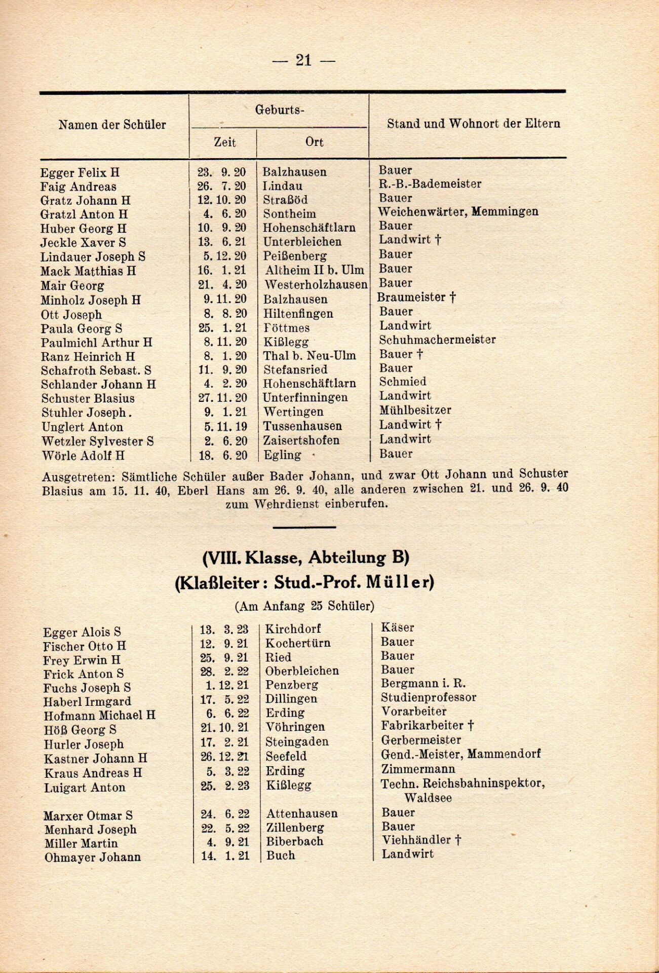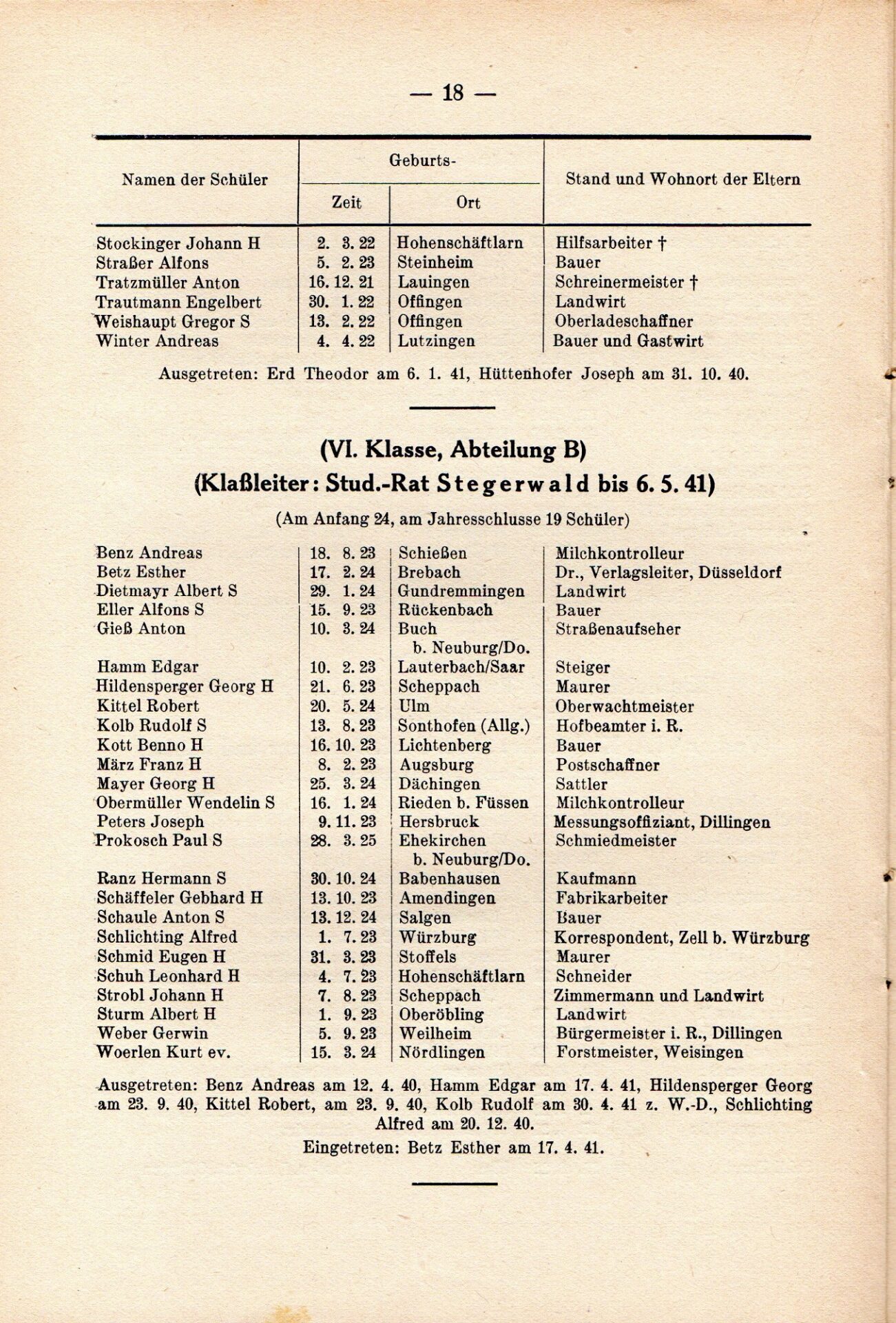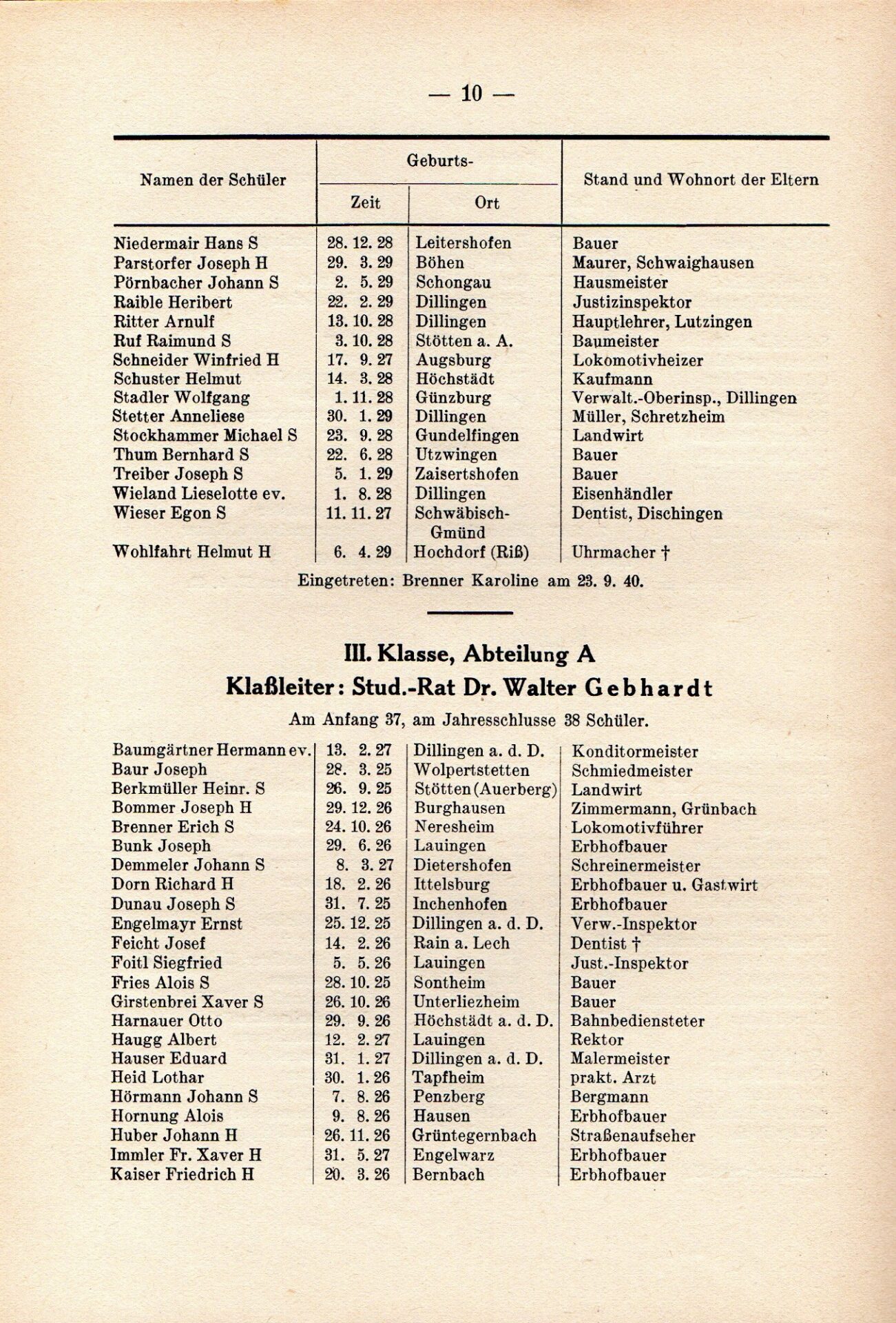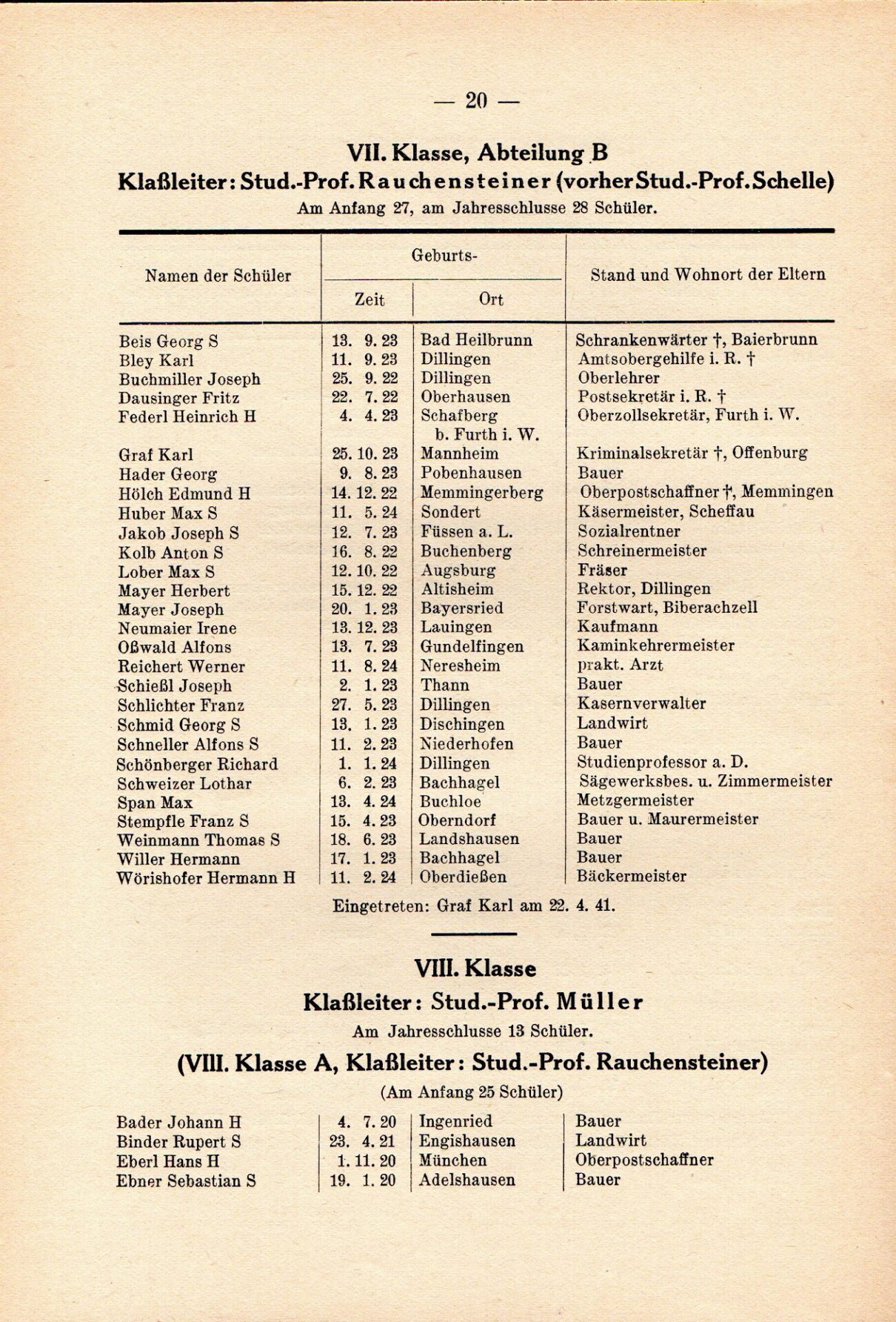 [33] Oberschule für Jungen Dillingen a.d.D. Bericht über das Schuljahr 1940/41. S. 33.