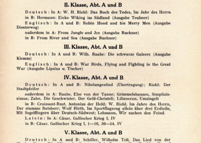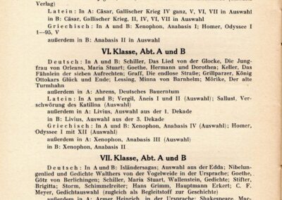 [37] Ein Vergleich zwischen den Unterschriften auf der grün-weißen Absolviakarte von 1931, dem Jahresbericht des Schuljahres 1930/31 und dem von 1931/32 belegt, daß viele Unterzeichner der Karte von 1931 auch im nächsten Schuljahr noch blieben und das Abitur anstrebten. Den Schwund nach der 6. Klasse zeigt ein Vergleich der Schülerzahlen am Schuljahresende von 1930/31 mit dem Schuljahresbeginn von 1931/32. In der Abteilung (Klasse) A verringerte sich die Zahl von 40 Schüler auf 30, in Abteilung B von 39 auf 33.